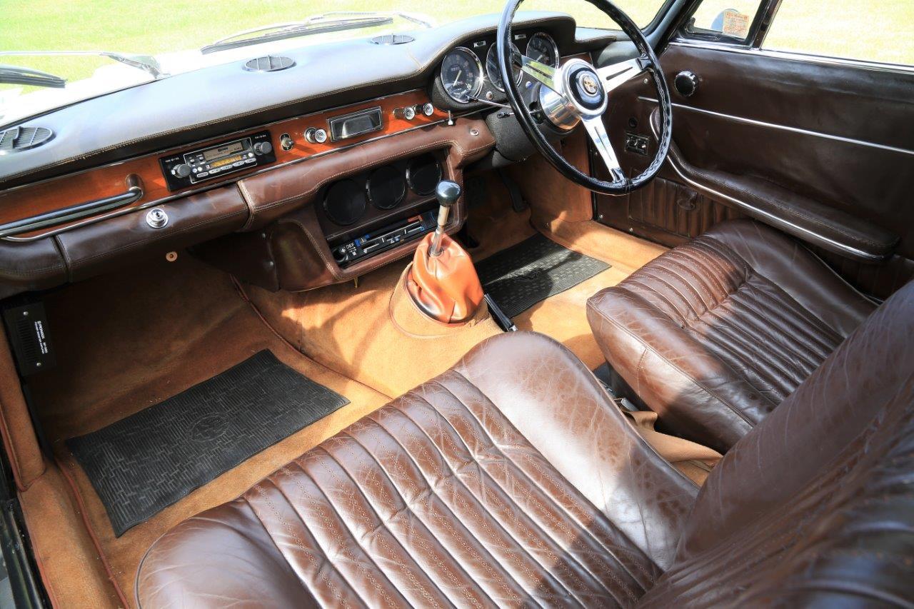 A very nice and original example. Recent work has incl. new brakes (pads, disks and new Girling booster) , suspension overhaul, period correct Michelin tyres (incl. the spare), refurbished wheels, completely reconditioned head, rear main oil seal, Classic Alfa clutch (incl. master and slave), new correct Marmitte exhaust, thermostat, thermo switch, fuel pump and regulator, rubber boot mat, door seals, etc. The paint is mostly original and very nice for its age. All chrome work in very good condition. Brown leather interior is in very good condition.